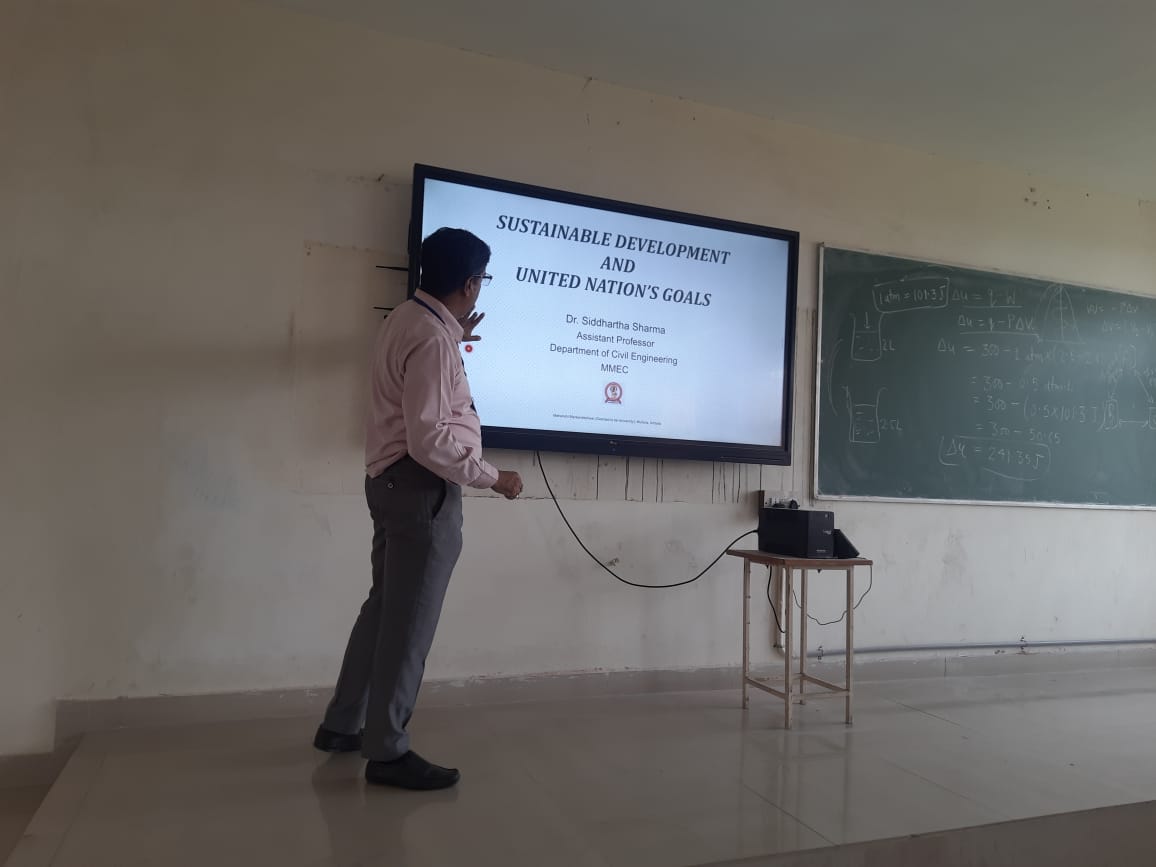 Sustainability means meeting our own needs without compromising the ability of future generations to meet their own needs. Along with the natural resources, need for social and economic resources is also required.Sustainability is not just environmentalism but its concern for social equity and economic development.In 2015 United Nations adopted the Sustainable developments goals for peace and prosperity of the planet.For the same purpose CENTRE FOR SUSTAINABILITY is established in MMDU to create awareness among its faculty, students, staff and general public about the need and importance of sustainable development goals, their importance and its impact on the progress of nation.To meet the objectives of SDG’s, an awareness lecture on the topic Sustainable Development and United Nation’s Goals is being organized by M.M.Engineering College as per the schedule:
